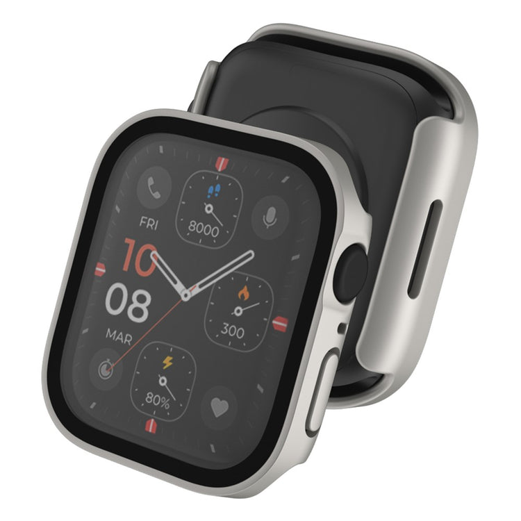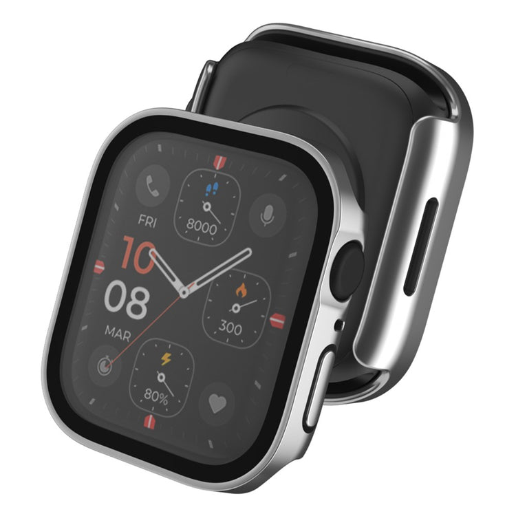 Mega Flot Apple Watch Series 8 (41mm) / Apple Watch Series 7 41mm Cover med Skærmbeskytter i Plastik og Hærdet Glas - Sølv#serie_10