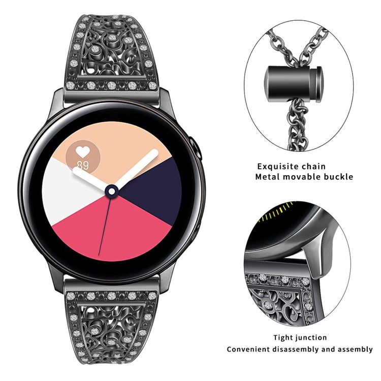 20mm Universal rhinestone floral décor watch strap - Black#serie_1