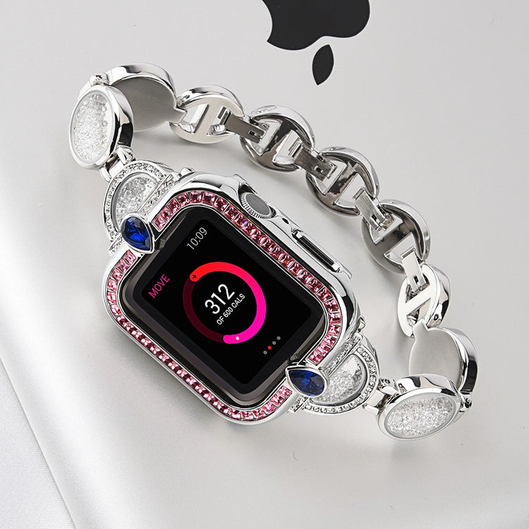 Holdbart Apple Watch Series 7 41mm Metal og Rhinsten Rem - Pink#serie_3