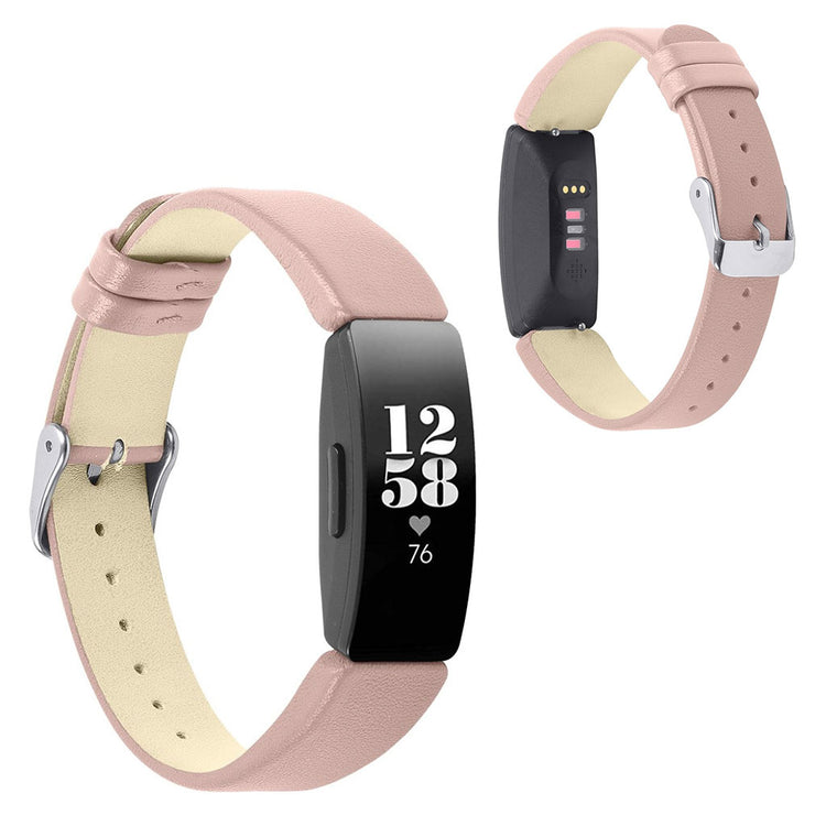 Meget fint Fitbit Inspire Ægte læder Rem - Sølv#serie_5